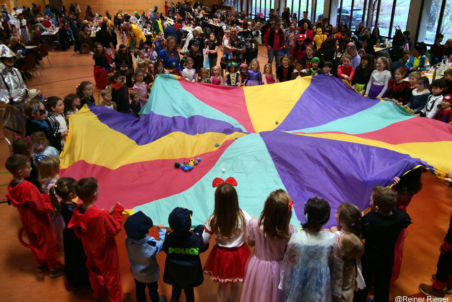 Das Animationsteam um Elisa Dermaku, Nadine Wurmbäck und Jan Markowetz verstanden es die Kids vorbildlich und genial zu unterhalten. Hüpfen, Tanzen, Spielen, Raten und vor allem Mitmachen und Spaß haben war für die Kleinen und Großen Besucher angesagt. Ein besonders Highlight für die Kids war sicherlich die Katapultierung kleiner Bälle über das große gespannte bunte Tuch durch die Wiesentalhalle.